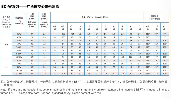 BD series nozzles are divided into standard angle and wide angle.